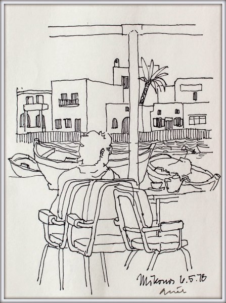 12 Mykonos, Hafen, Tintenstift/Papier 1978