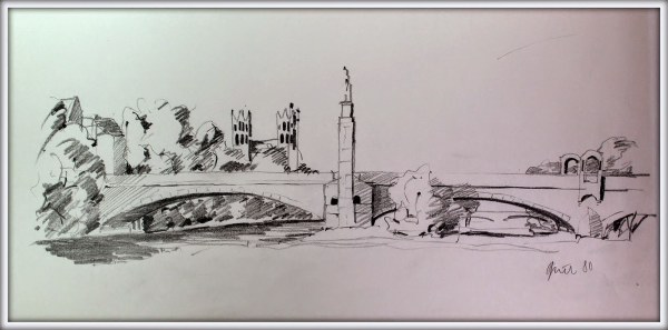 7 Wittelsbacherbrücke München, Bleistift/Papier 1980