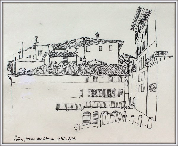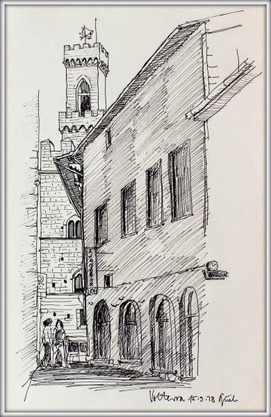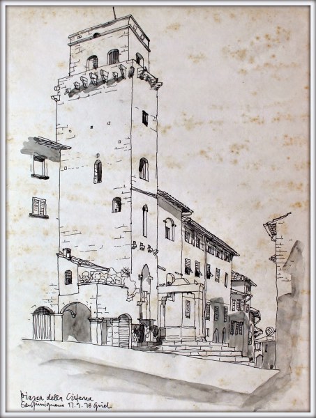 11 San Gimignano, Tintenstift/Wasserfarbe/Papier 1978