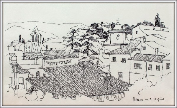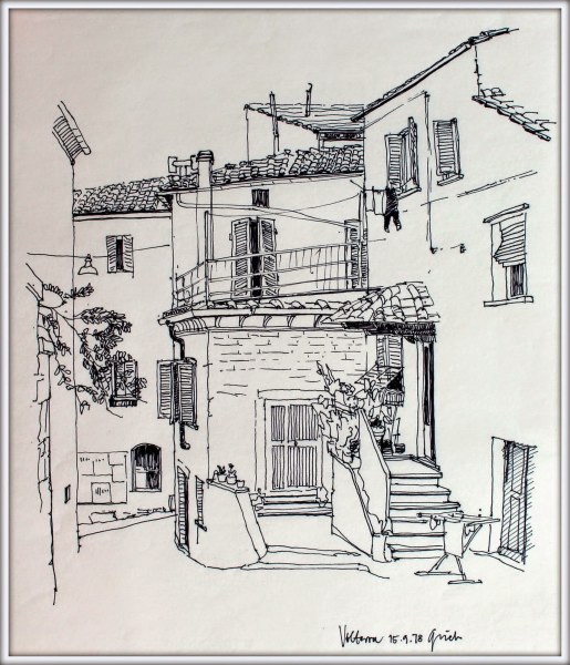 10 San Gimignano, Tintenstift/Wasserfarbe/Papier 1978