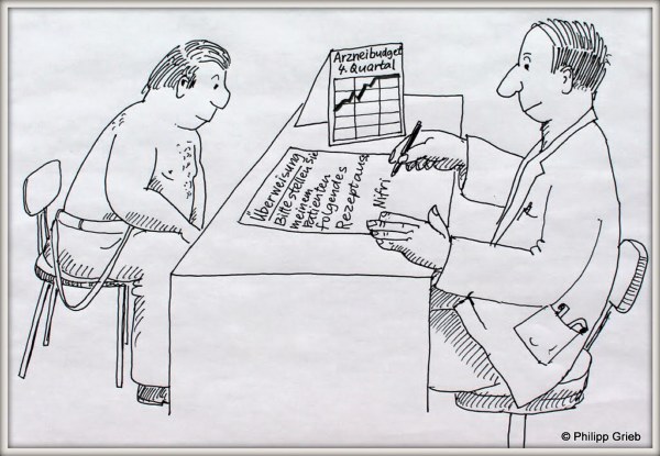 Für den Westermayer-Verlag entstand 1994 in Zusammenarbeit mit Bernhard Collien, Herausgeber, eine Serie von Cartoons mit Bezug zu Beiträgen in der Publikation "therapie budget aktuell". Es ging um damals aktuell diskutierte Themen in der ärztlichen Praxis wie Generika, Budgetierung der Arztkosten, Naturmedizin, Dosierung von Medikamenten etc.