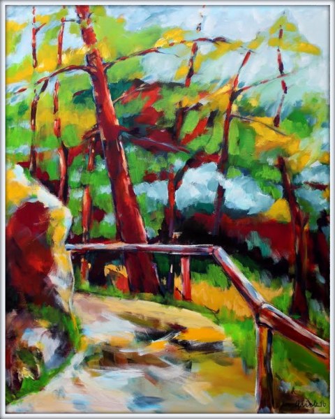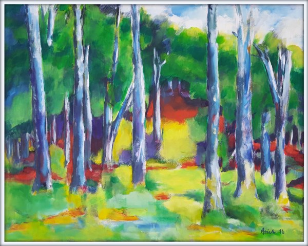 Morgendlicher Wald, Acryl/Leinen, 99x79, #161228