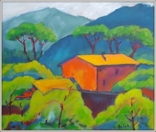Montebello - Casa rossa, 60x50, Acryl/Leinen, #160903