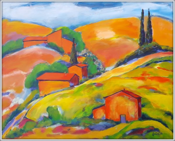 Toskana - Spätsommer, 100x80, Acryl/Leinen, #160909