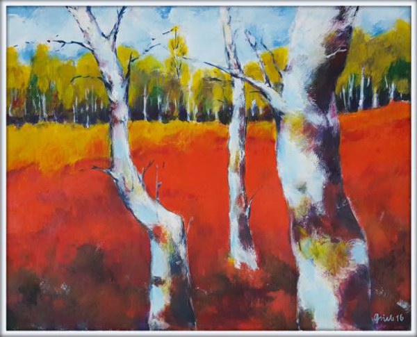 Birken im Moor, Acryl/Leinen, 100x80, #161229 (A.S.)