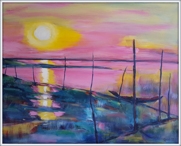 Sunderban Sunset, Acryl/Leinen, 100x80, #170301