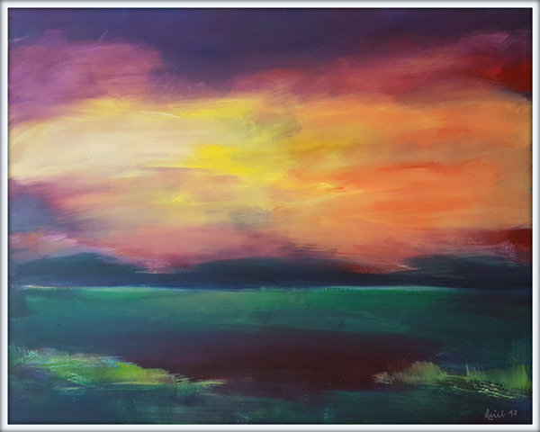 Abend am See, Acryl/Leinen, 100x80, #171120