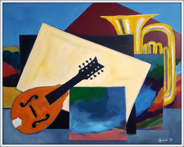 Stillleben mit Tuba, Acryl/Leinen, 100x80, #180906