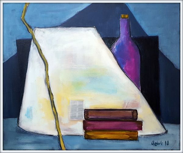 Stilleben mit Büchern, Acryl/Leinen, 60x50, #180908