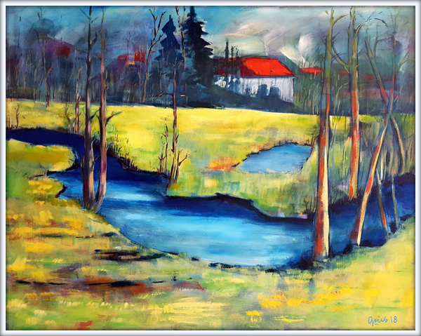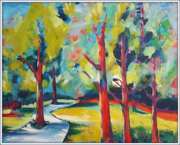 Park am Wald, Acryl/Leinen, 100x80, #180922