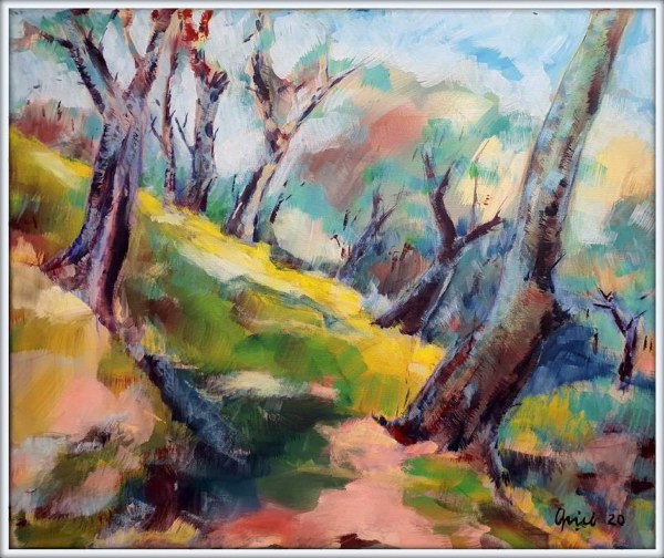 Oliveto Montebello, Acryl/Leinen, 60x50, #201012