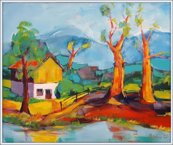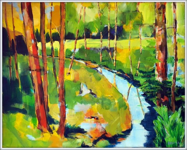 Am Teich, Acryl/Leinen, 60x50, #200502