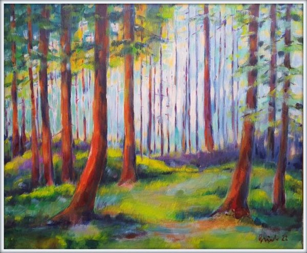 Lichter Wald, 60x50, Acryl/Leinen, 60x50, #220611