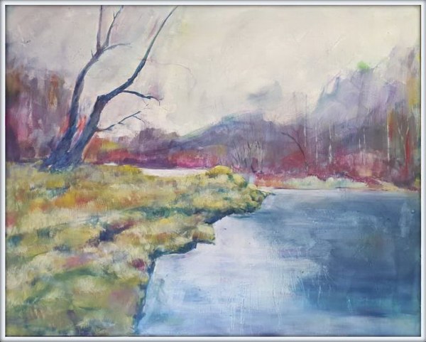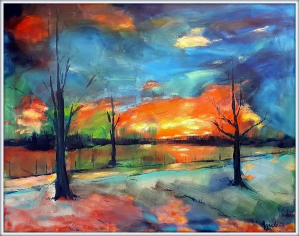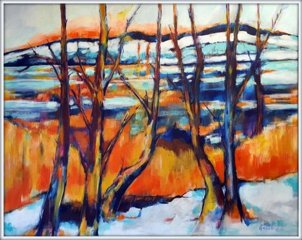 Winter am See, Acryl/Leinen, 80x100, #220302