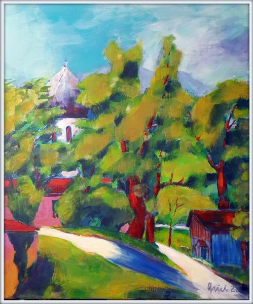 Frauenwörth, Acryl/Leinen, 50x60, #220712