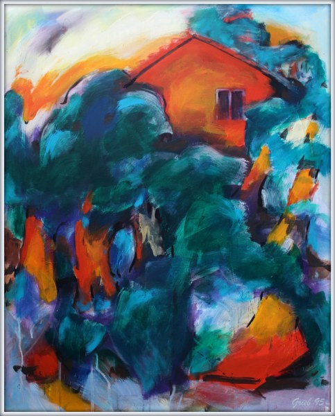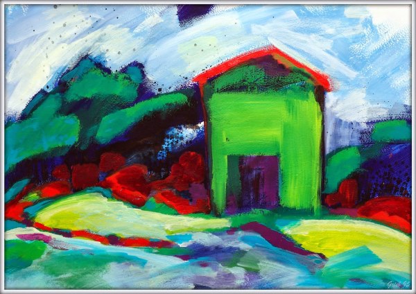 Grüne Hütte, Acryl/Karton, 60x85, 1995