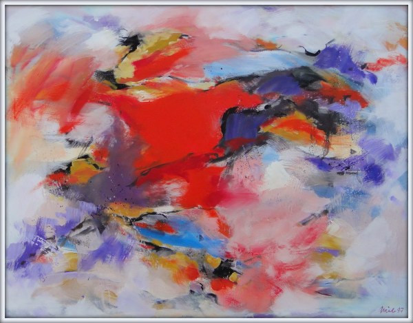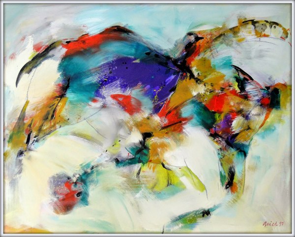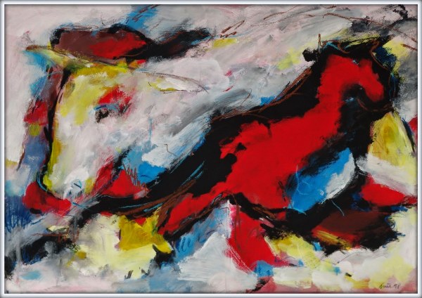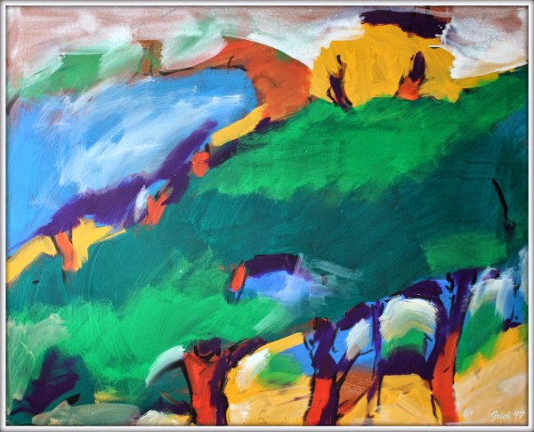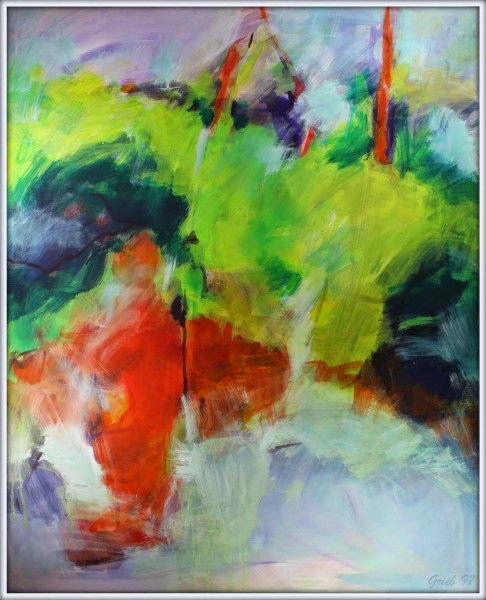 Die fliehenden Tiere und die Überlagerung unterschiedlicher Motive von Generationen von Jägern ergaben beeindruckende Zeichnungen und Malereien, die ältesten bekannten Beispiele abbildender Kunst, denen Grieb in einer Reihe von Bildern nachspürt („Lascaux“, „Ardeche 1“, „Ardeche 2“, "Altamira", "Rouffignac" 1997/98).